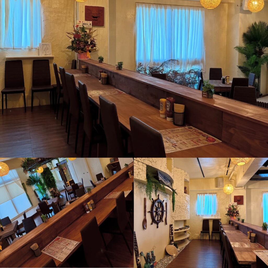 店内はリゾート感あふれる明るい雰囲気で、記念日利用にも人気です。