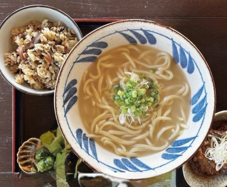 昼の時間帯は、地元食材を使った宮古そばメインのランチ。