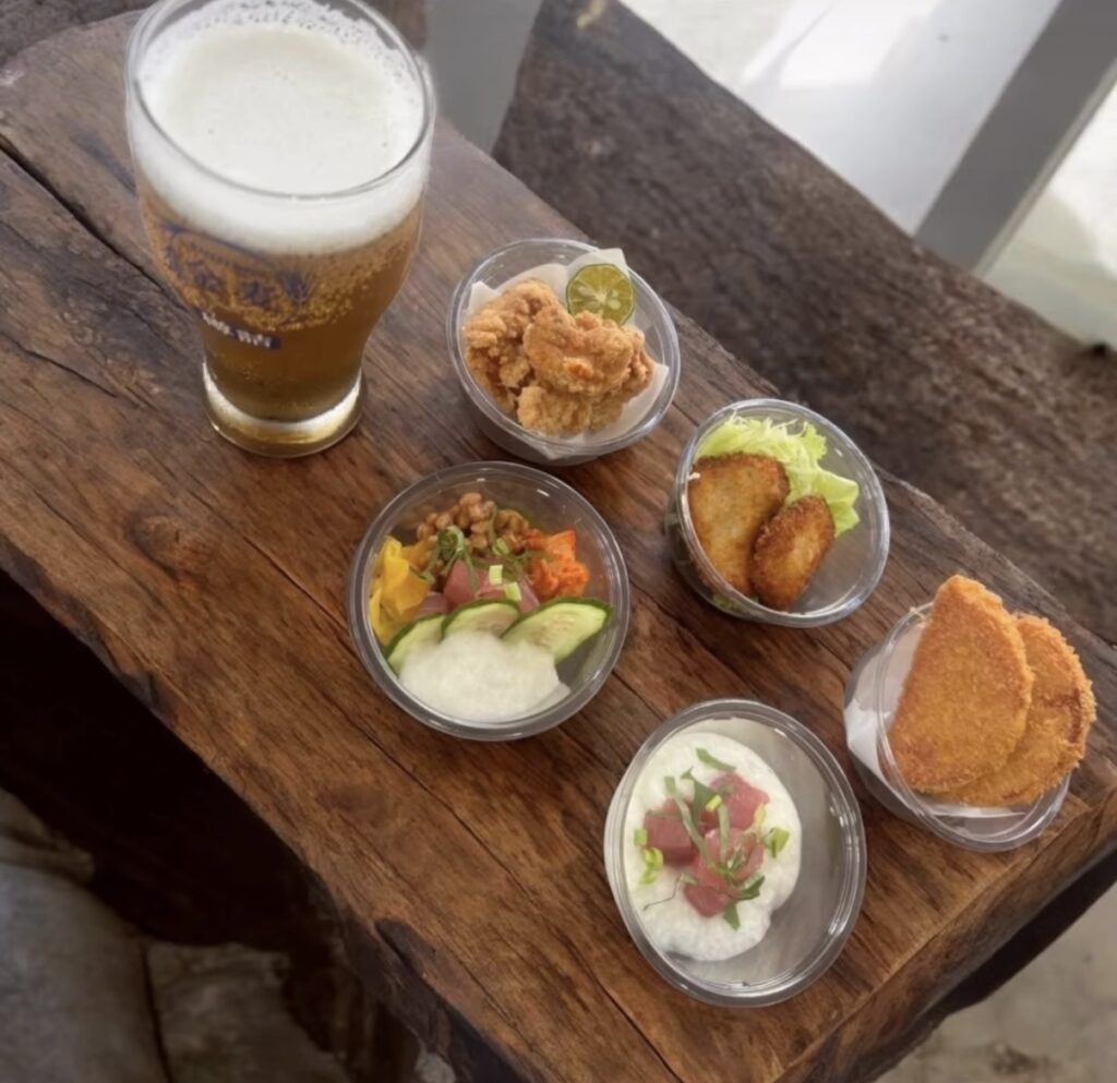 昼は元気ごはん、夜はちょい飲みセットで島時間を満喫。