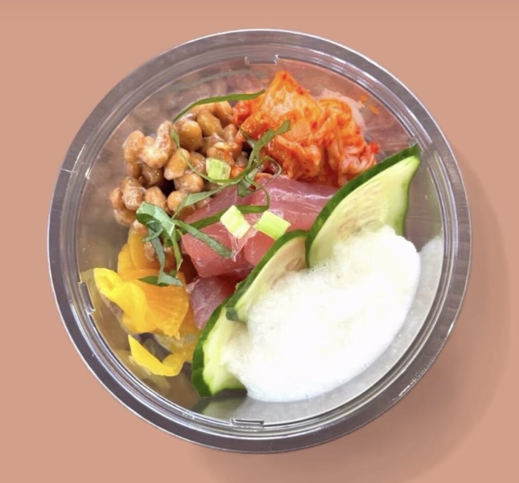 納豆、とろろ、キムチ、まぐろなどを豪快に混ぜ合わせる“爆弾スタイル”が特徴で、