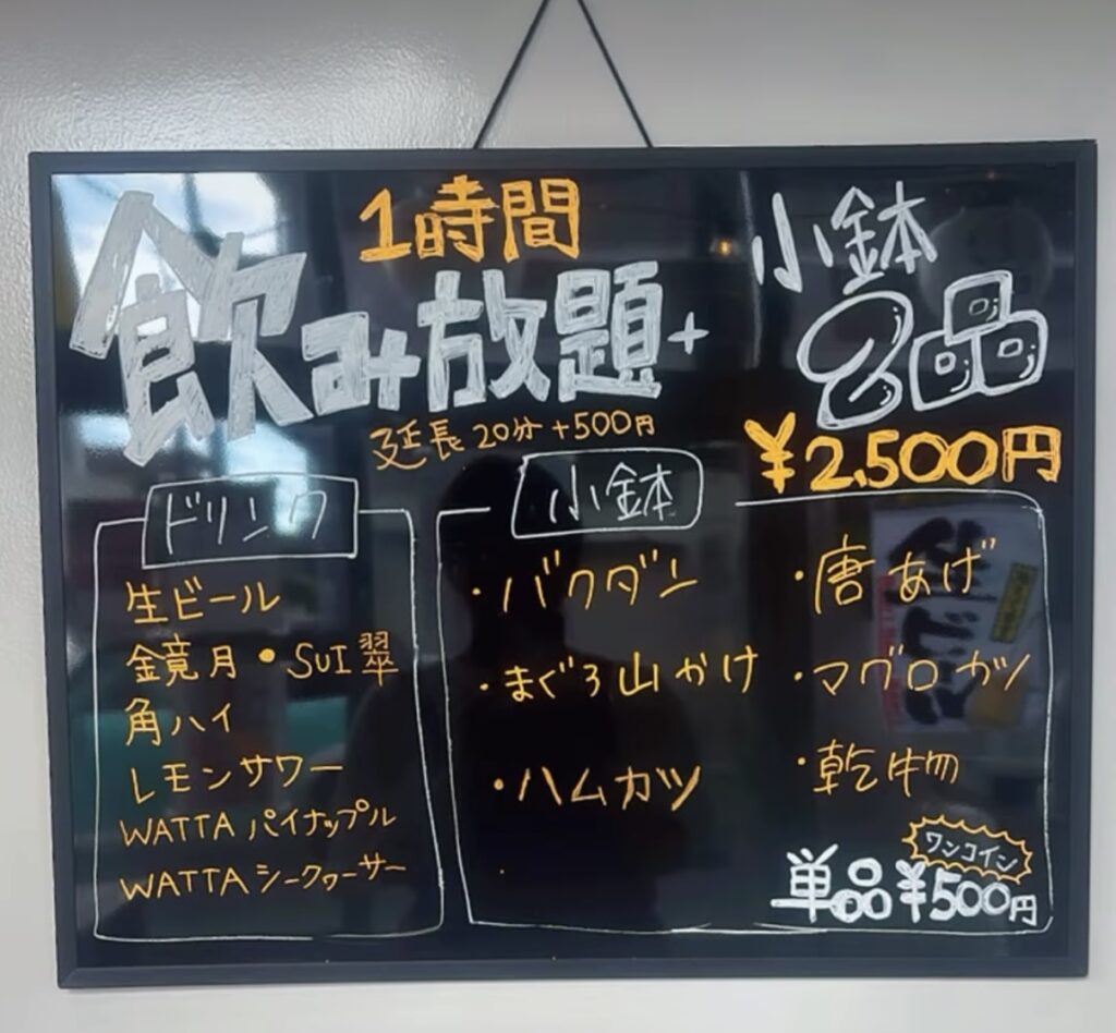 夜営業では、**「1時間飲み放題+小鉢2品セット」**が大好評!