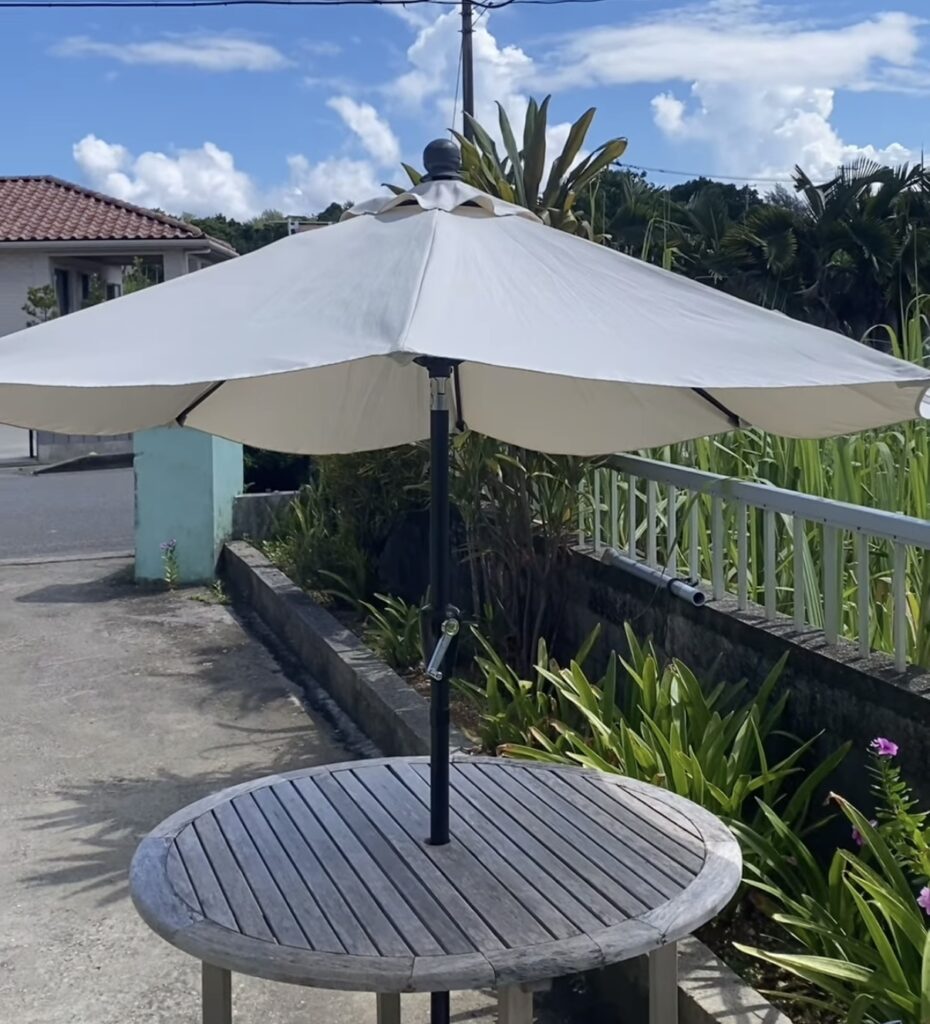 お店の前にはパラソル付きのテーブル席もあり、青空の下でできたてのアンダギーを味わうことも可能。下地島空港から車で約6分とアクセスも良く、フライト前後の立ち寄りスポットとしてもおすすめです。