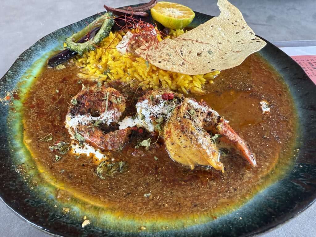 海老の旨みを余すことなく引き出した濃厚スパイスカレー。ぷりぷり食感と深いコクが魅力の人気No.1。