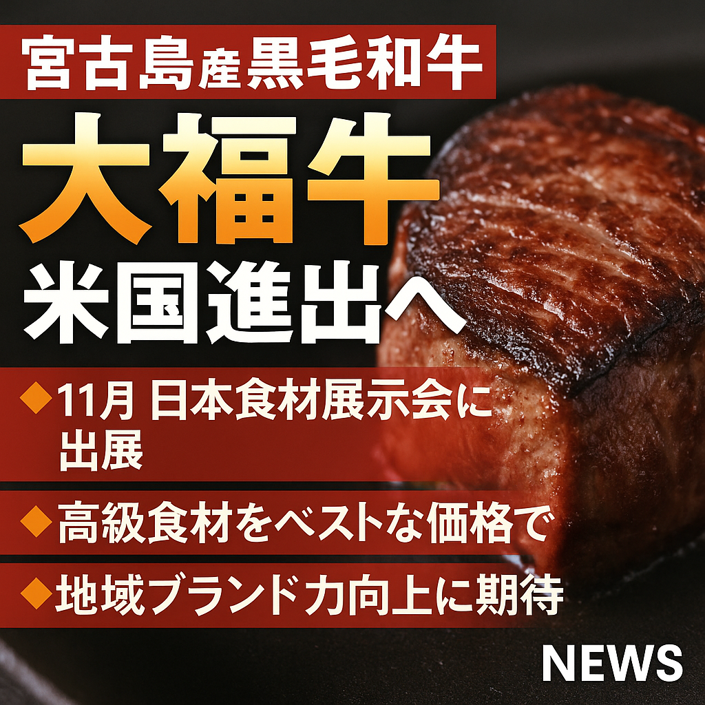ロサンゼルス展示会に出展、来年には専門店オープンも 🌴 宮古島から世界へ──“島発グローバルブランド”の挑戦 沖縄・宮古島の豊かな自然が育んだ黒毛和牛ブランド「大福牛(だいふくぎゅう)」が、ついに海外市場 … 🐂 宮古島ブランド牛「大福牛」アメリカ進出へ