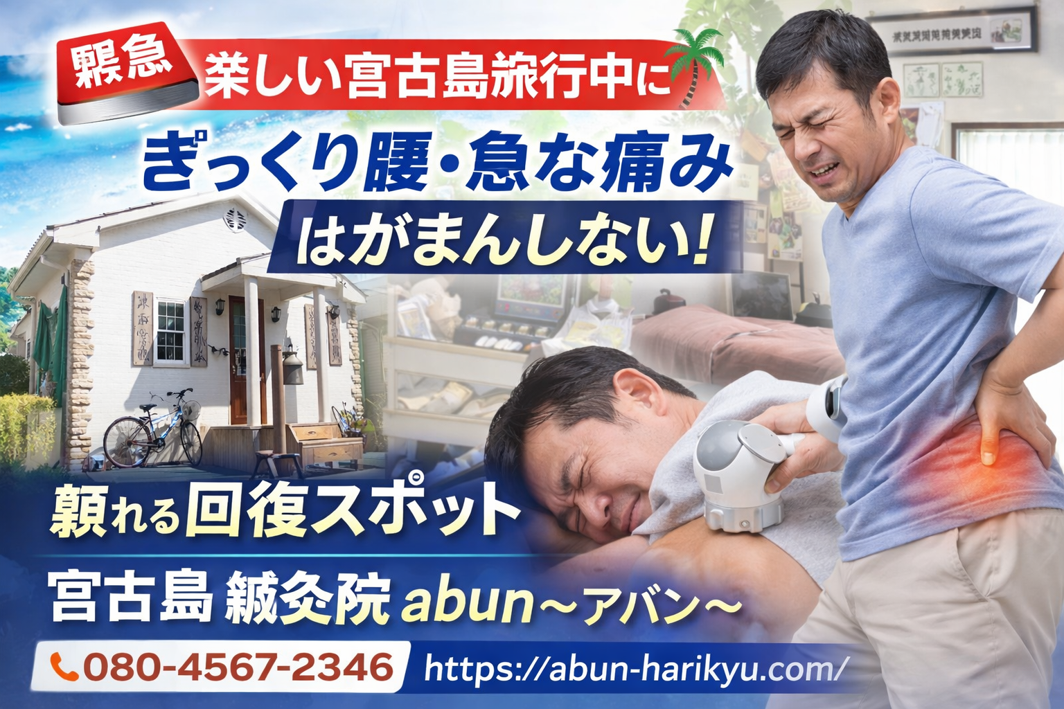 宮古島旅行中のぎっくり腰に|鍼灸院abunで緊急回復