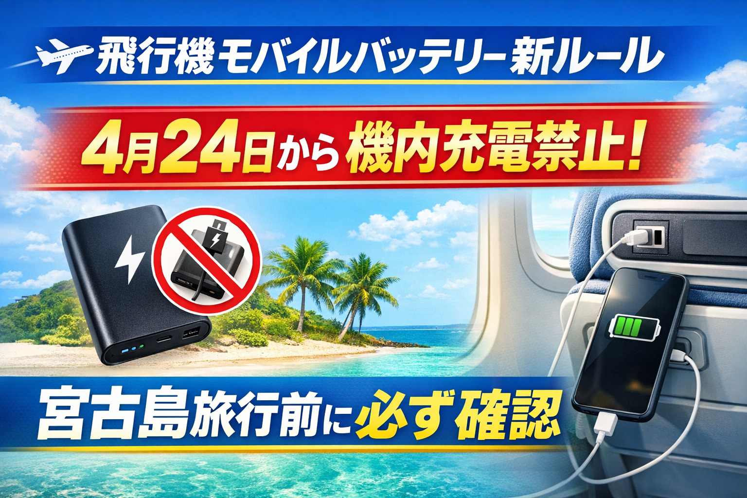 飛行機モバイルバッテリー新ルール|宮古島旅行前必読【2026年4月2…