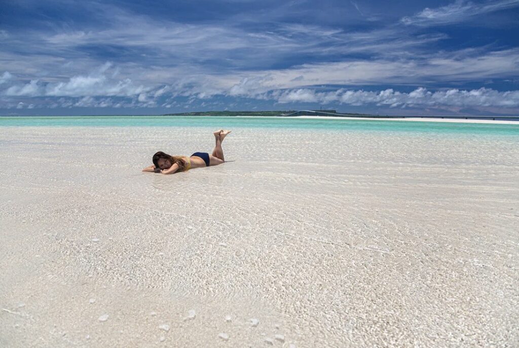 투명한 미야코 블루 바다색과 새하얀 모래가 만들어내는 풍경은 말 그대로 천국 같습니다. 주변에는 건물도 없고, 360도 온통 하늘과 바다뿐인 특별한 장소입니다.