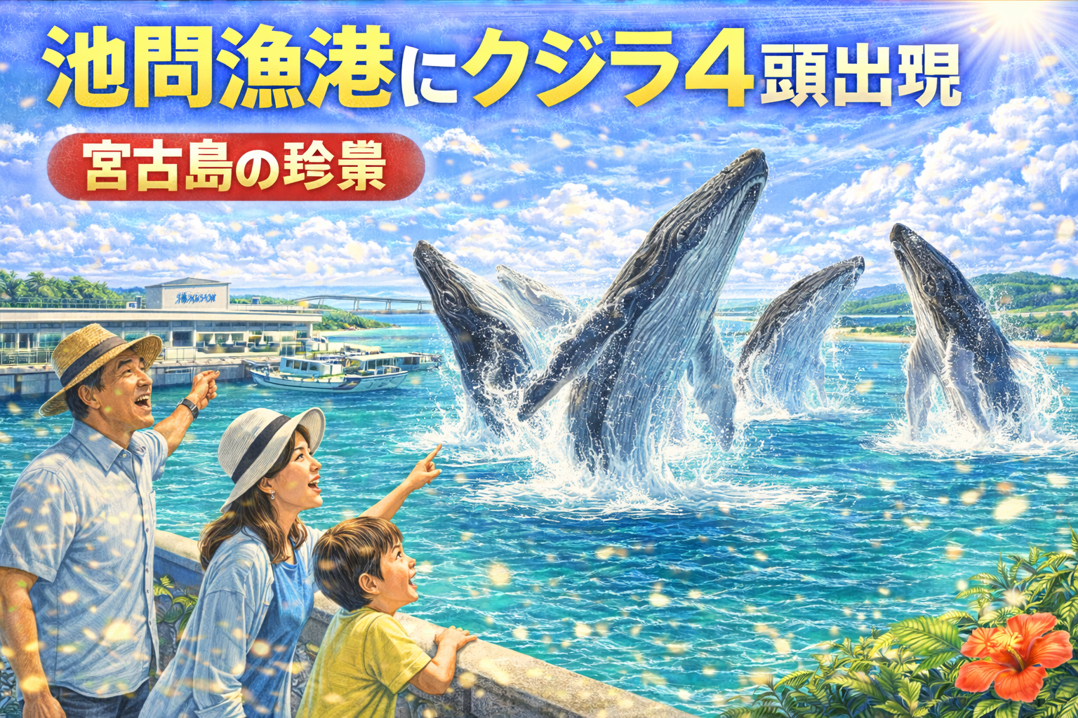 🐋 宮古島・池間漁港にクジラファミリー現る!港内を悠々と泳ぐ珍し[…]